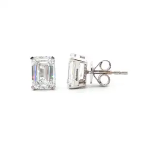 Exquisite stud earrings, meticulously crafted in 18k white gold, showcase the timeless elegance of 2.1 carats of emerald-cut diamonds. Each stone, a testament to precision, features a classic step-cut, ...