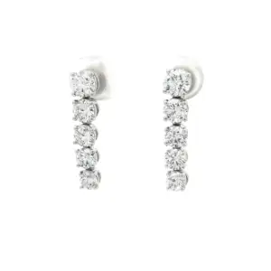 Elevate your elegance with these exquisite 2.71 carats drop earrings. Each earring showcases a graduated cascade of round brilliant cut diamonds set in lustrous 18k white gold. The diamonds, ...