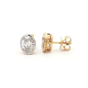 Exquisite stud earrings showcasing oval-shaped diamonds with a brilliant cutting style. Crafted in sleek 18k yellow gold finish, these earrings offer an elegant touch of sophistication and timeless beauty. ...
