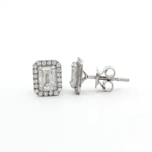 Elevate your everyday style with these exquisite 1.53 carat stud earrings, crafted in lustrous 18k white gold. Surrounded with a halo of diamonds, each earring showcases a captivating emerald ...
