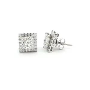 Embrace classic sophistication with these two piece stud earrings. Finely crafted in 18k white gold, they feature brilliant cut princess diamonds that offer unparalleled scintillation, paired with a halo ...