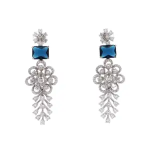 Enhance your elegance with these exquisite dangle earrings, crafted in lustrous 18k white gold. Each earring features a square-cut deep blue stone, complemented by a cluster of round-cut diamonds, ...