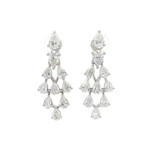 Make a grand entrance with these glamorous diamond dangle earrings. Each earring features a cascade of brilliant, pear cut diamonds suspended in a delicate, articulated design. These earrings are ...