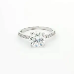 Experience timeless elegance with this exquisite 3.02 carat solitaire ring. A dazzling round brilliant cut diamond takes center stage, expertly set to maximize its brilliance. The 18k white gold ...