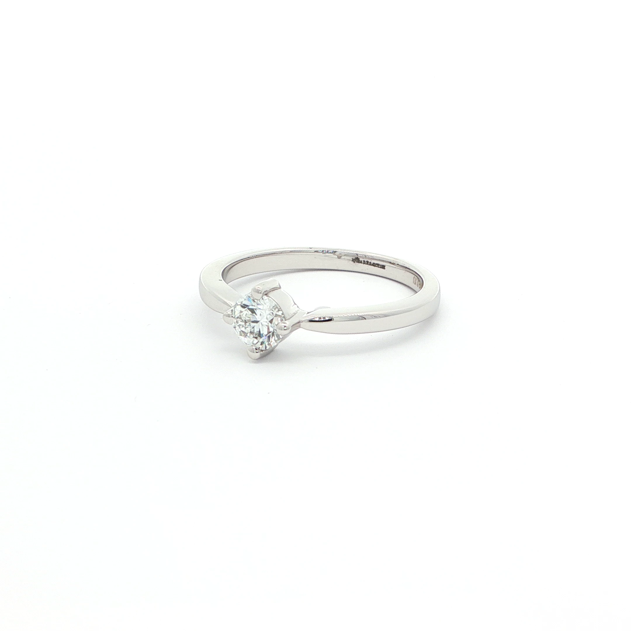 Exquisite 0.41 carat solitaire ring featuring a meticulously crafted round cut diamond. Set in lustrous 18k white gold, this timeless piece showcases a brilliant diamond, epitomizing elegance and sophistication. A symbol of everlasting love and commitment.