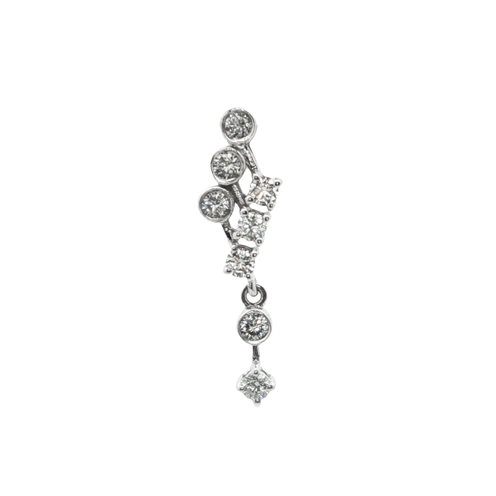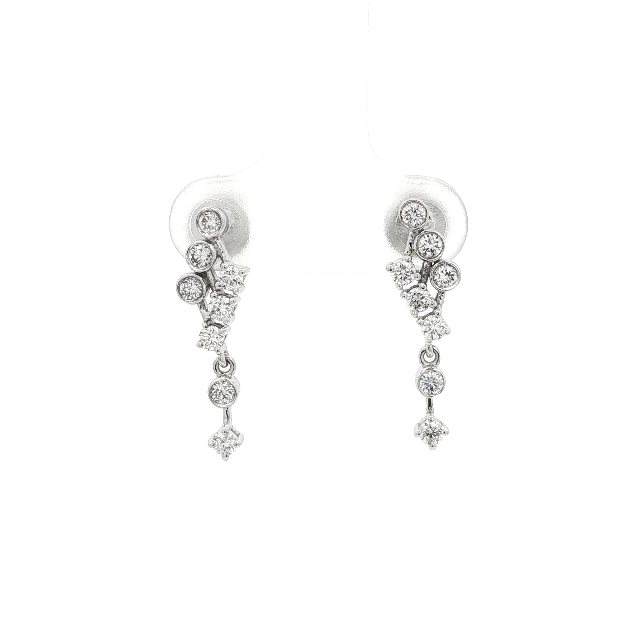 Elevate your style with these sophisticated dangle earrings. Crafted in sleek 18k white gold, the earrings feature a delicate cascade of round brilliant-cut diamonds. The design ensures a captivating play of light, perfect for adding a touch of elegance to any ensemble. A timeless addition to your jewelry collection.