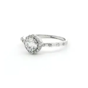 Exquisitely crafted, this solitaire ring features a scintillating round brilliant cut diamond set in a sleek 18k white gold band. The timeless design is enhanced by fine markings and meticulous detailing. The diamond’s exceptional cut showcases its brilliance, making this piece a perfect symbol of enduring love and commitment.