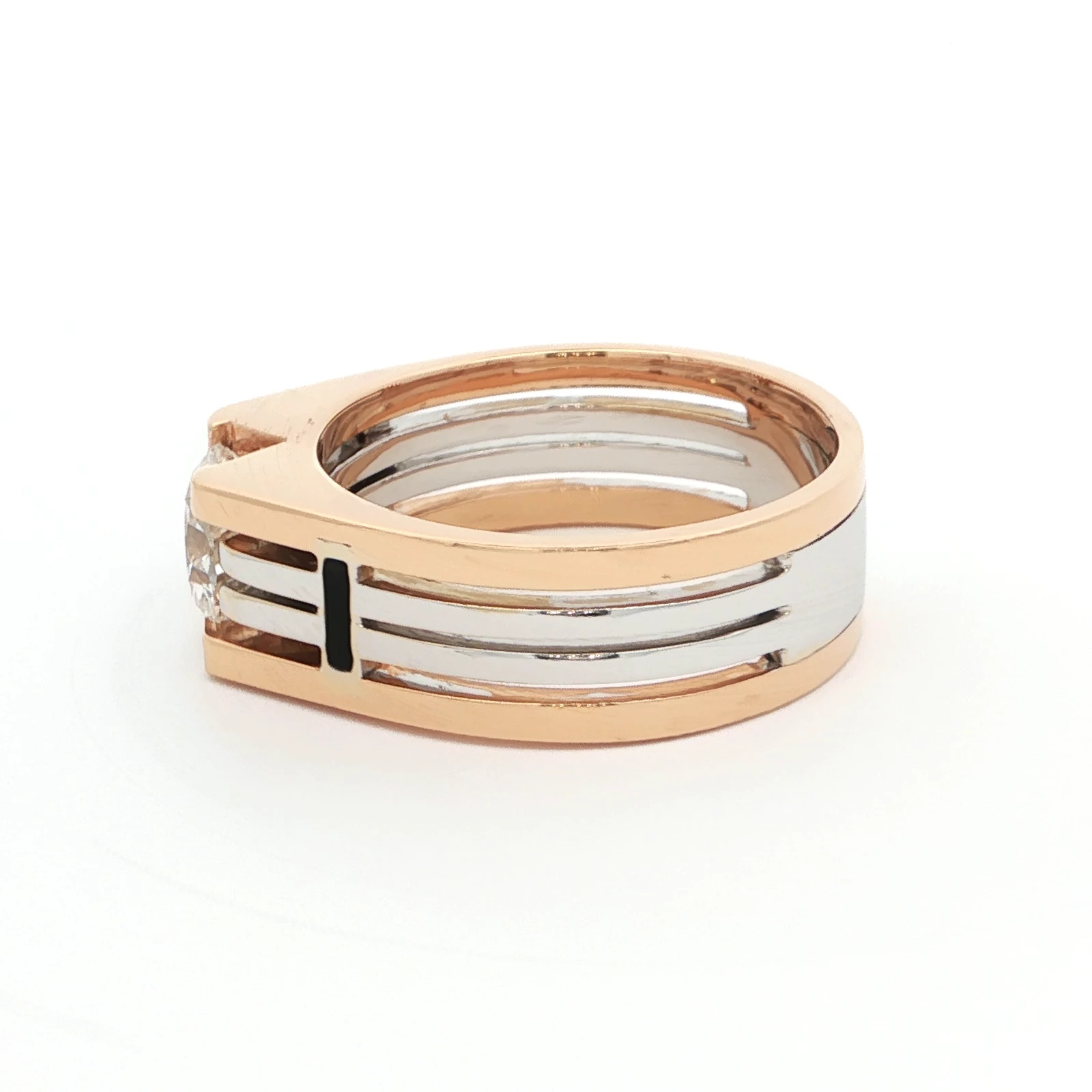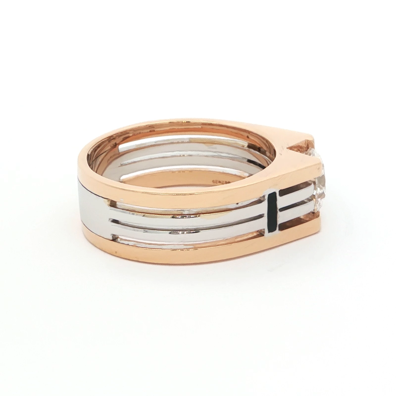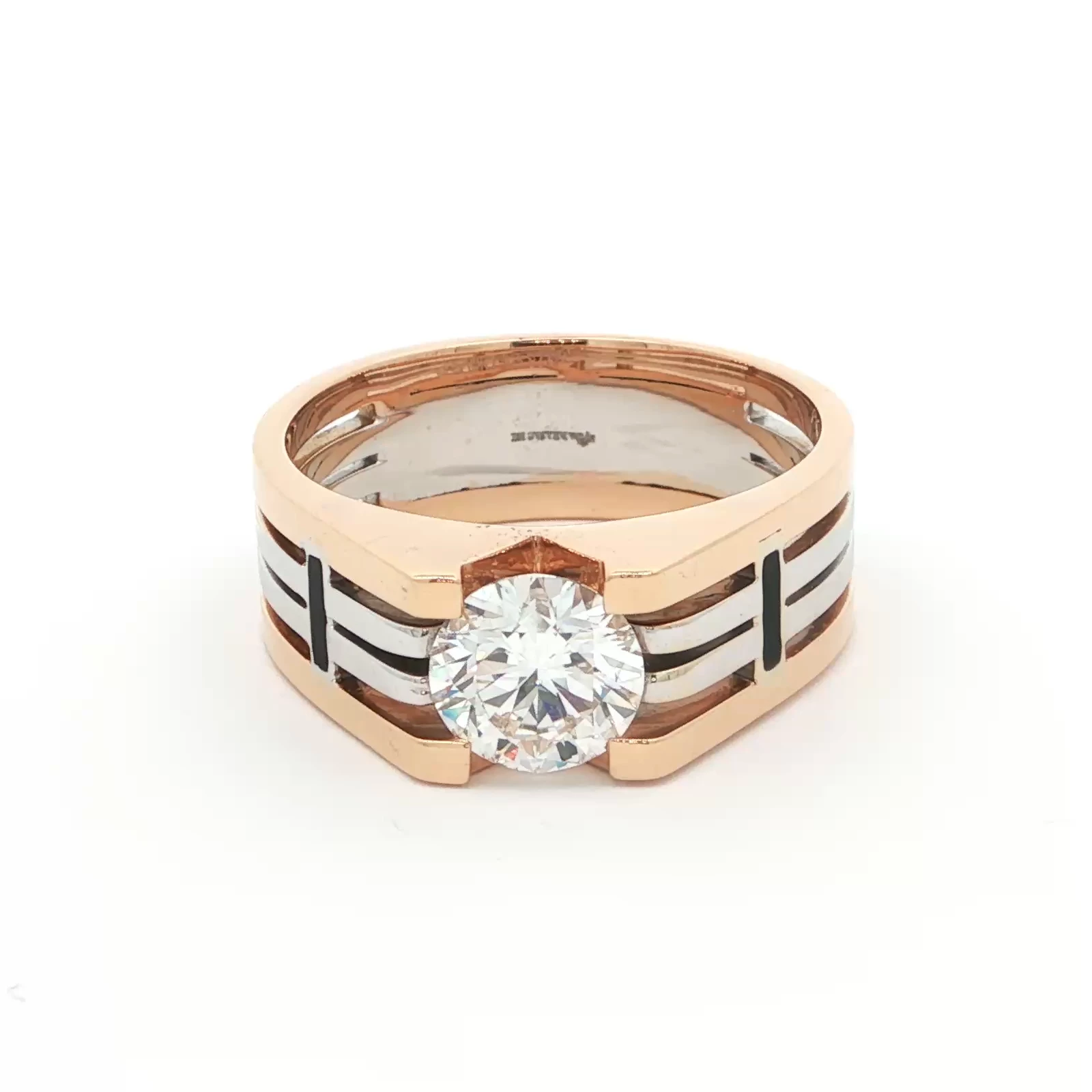 Exquisitely crafted, this solitaire ring for men features a brilliant round cut diamond set in lustrous 18k rose gold and white gold. The refined design showcases the diamond’s inherent fire and scintillation, making it a timeless expression of elegance. This piece is an impeccable selection for marking life’s treasured moments.