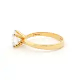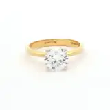 Exquisite 1.54 carat solitaire ring featuring a brilliant-cut, round diamond set in a classic 18k yellow gold band. This timeless piece exemplifies sophistication and elegance, making it a perfect symbol of enduring love. Its impeccable design ensures the diamond’s exceptional sparkle and brilliance are showcased, capturing light from every angle.