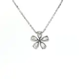 Elevate your style with this exquisite 18k white gold necklace featuring a delicate flower pendant. The flower is adorned with brilliant-cut pear-shaped diamonds, meticulously arranged to capture the light. This white gold necklace offers a touch of elegance and sophistication, perfect for any occasion.