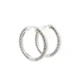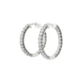Exquisite hoop earrings featuring 1.93 carats of brilliant-cut, round diamonds set in a polished 18k white gold. The design of these earrings provide a harmonious balance of sparkle and sophistication, making them an ideal accessory for elevating both day and evening wear.