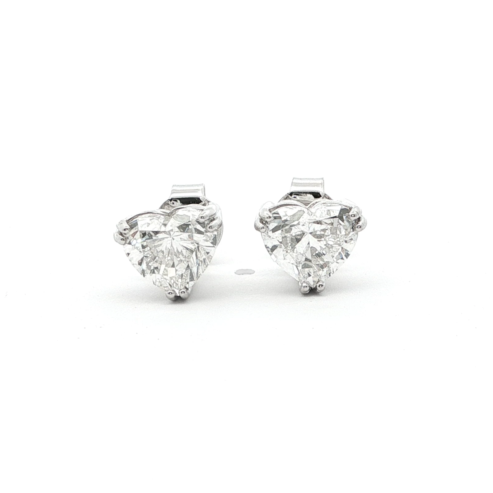 Elegantly crafted, these 2.06 carat stud earrings feature heart-shaped diamonds with a brilliant cut. The earrings are set in a lustrous 18k white gold finish, exuding timeless sophistication. These studs offer a dazzling sparkle and a touch of romance, making them a perfect addition to any jewelry collection.