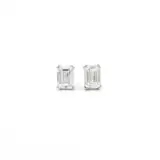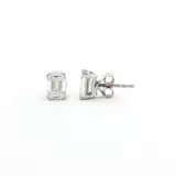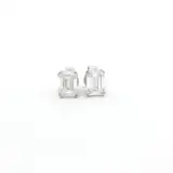 Exquisite stud earrings, meticulously crafted in 18k white gold, showcase the timeless elegance of 2.1 carats of emerald-cut diamonds. Each stone, a testament to precision, features a classic step-cut, enhancing its brilliance. These white gold earrings exemplify sophistication, perfect for adding a touch of refined glamour to any ensemble. A testament to timeless design and understated luxury.