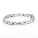 Elevate your style with this stunning tennis bracelet. The bracelet features 22.22 carats of fine round cut diamonds set in 18k white gold. Its classic design ensures a comfortable fit, making it perfect for everyday elegance or special occasions. The brilliant cut of the diamonds creates an eye-catching sparkle.