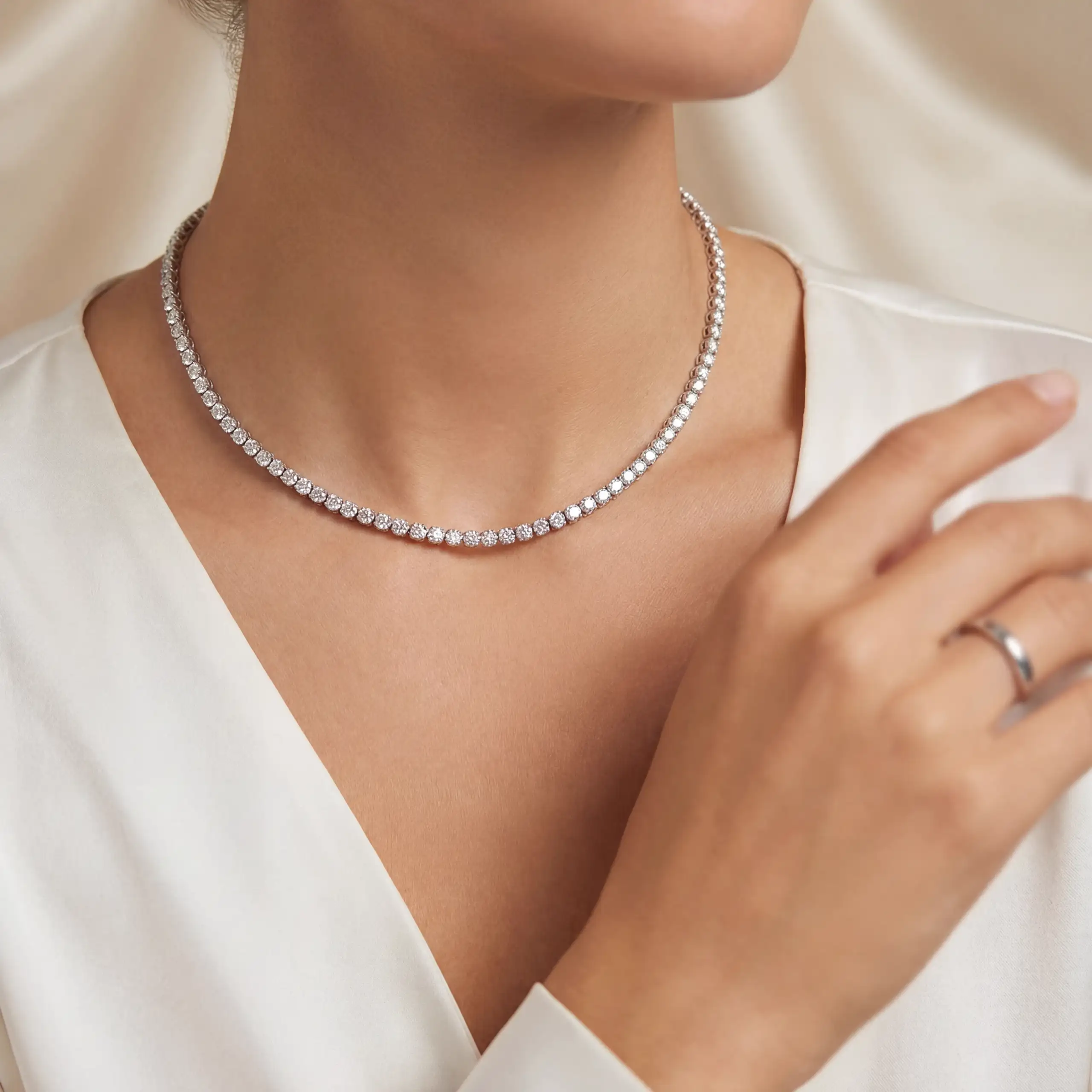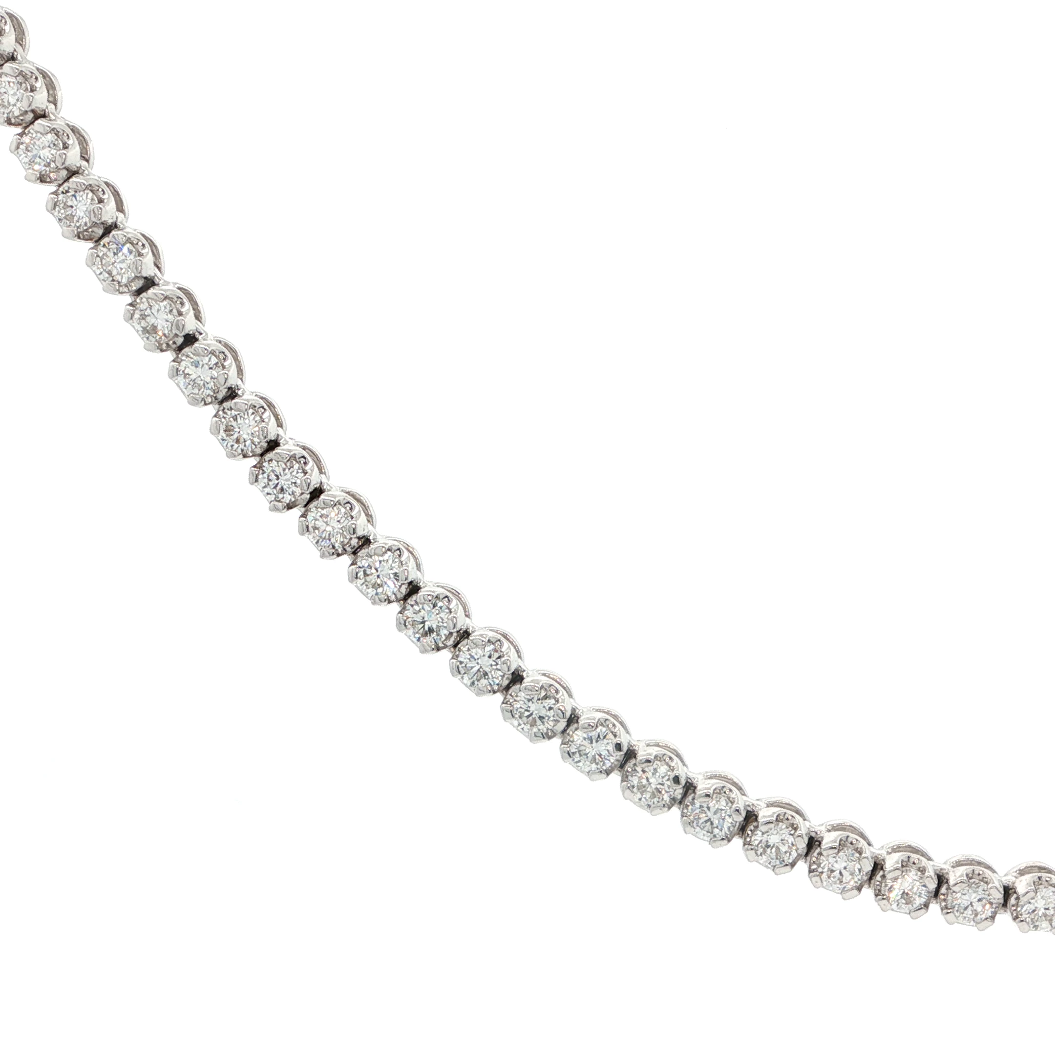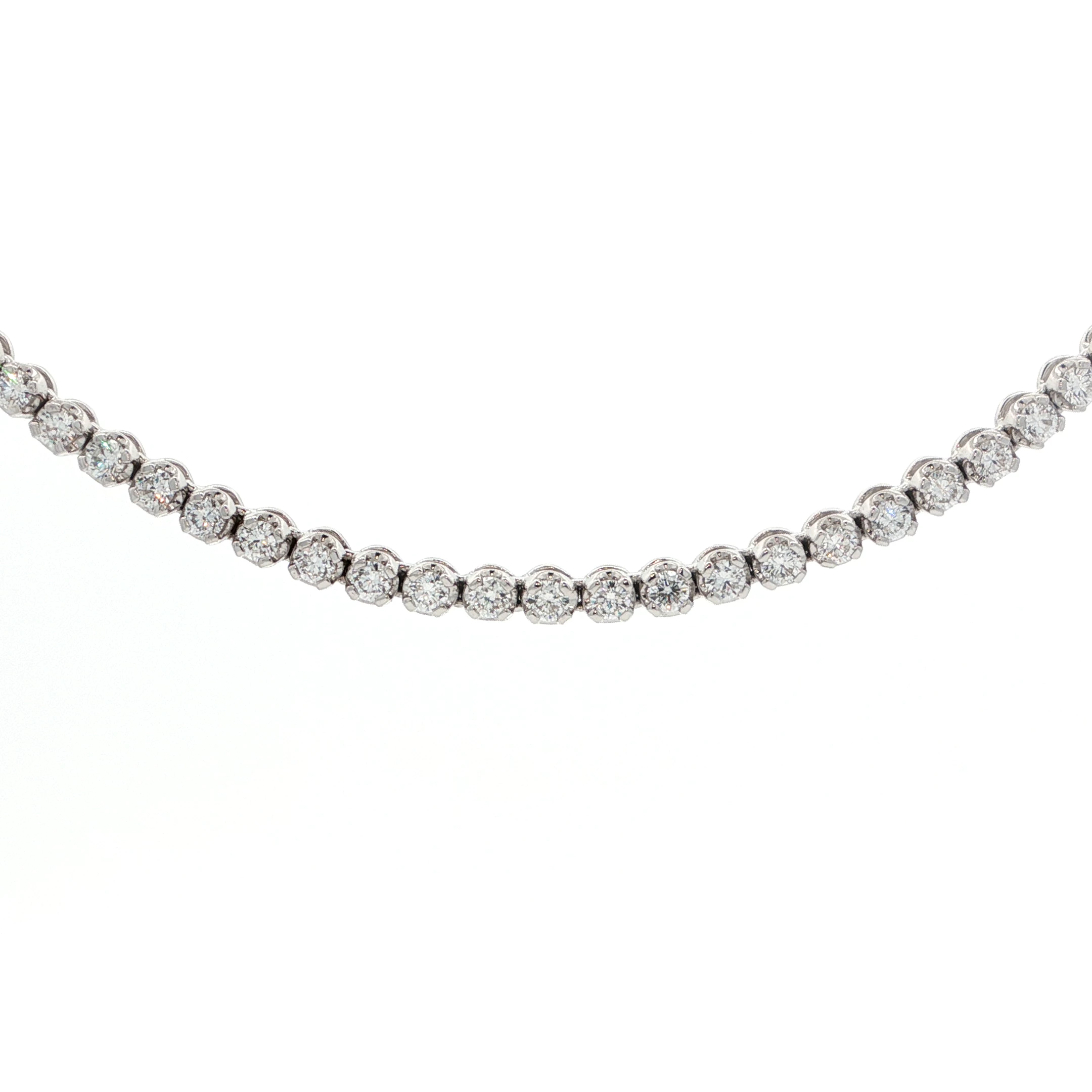 Experience the radiant allure of this diamond necklace, meticulously crafted in lustrous 18k white gold. Each round brilliant cut diamond is carefully set to maximize its fire and brilliance. The necklace features a seamless design for comfortable wear, perfect for adding a touch of understated elegance to any occasion. This timeless piece is an exquisite addition to any fine jewelry collection.