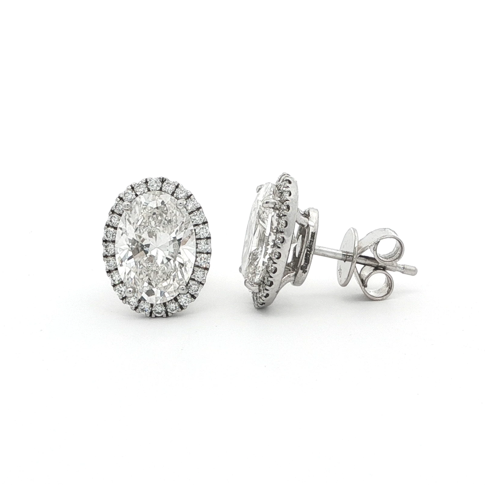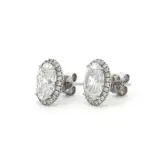 Dazzle in the timeless elegance of these 18k white gold stud earrings. Featuring oval cut diamonds, these earrings exude sophistication. The diamonds, meticulously selected for their exceptional clarity and brilliance, capture and reflect light with every movement.
