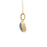 Exquisite charm necklace featuring a 10.80 carat blue topaz gemstone with mixed cutting style, paired with fine natural diamonds. The topaz exhibits excellent transparency, polish, and symmetry. Set in lustrous 18k yellow gold, this pendant exemplifies refined elegance and showcases impeccable craftsmanship. The pendant is suspended vertically from the gold chain.
