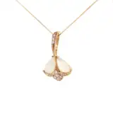 Exquisite charm necklace featuring a delicate pendant design crafted in warm 18k yellow gold. The pendant showcases mesmerizing 2.78 carats of cabochon moonstones, complemented by dazzling round brilliant diamonds. This elegant piece adds a touch of sophistication and ethereal beauty to any ensemble. A testament to refined craftsmanship and timeless style.