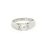 This captivating solitaire ring showcases a 0.77 carat brilliant round cut diamond set in a lustrous 18k white gold band with a heart shaped basket setting. The classic design elegantly accentuates the diamond’s exceptional fire and brilliance, making it a timeless symbol of love and commitment. A perfect piece for any occasion.