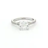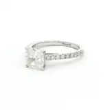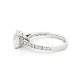 Crafted in 18k white gold, this 2.09 carat elegant ring showcases a captivating cushion cut diamond. The brilliant cutting style enhances the diamond’s sparkle, secured in a timeless setting. With its refined half eternity design and impeccable craftsmanship, this ring symbolizes everlasting love and commitment.