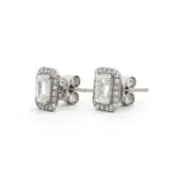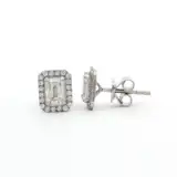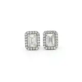 EMERALD CUT HALO STUD EARRINGS