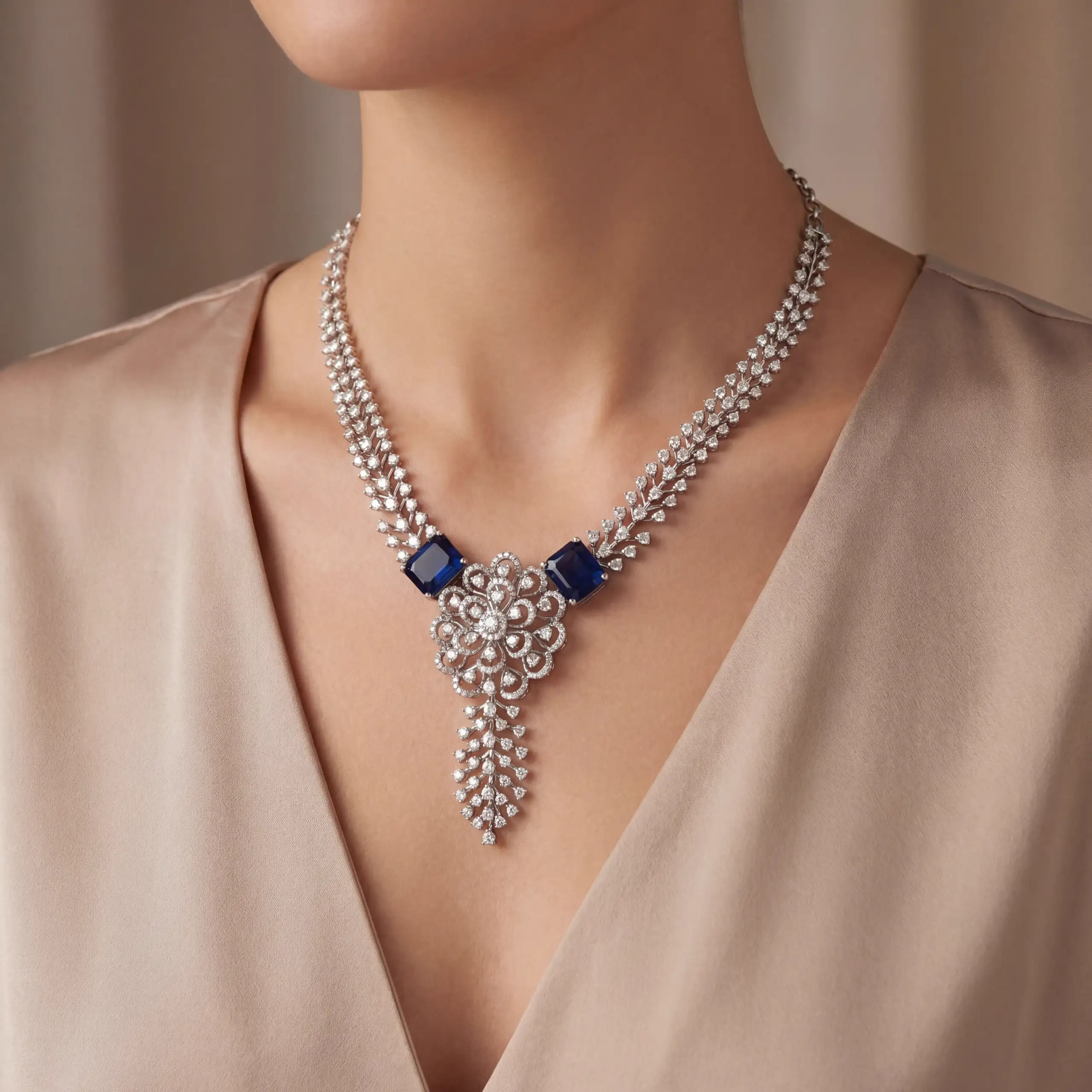 FLORAL BLOOM DIAMOND NECKLACE BLUE ACCENT STONES