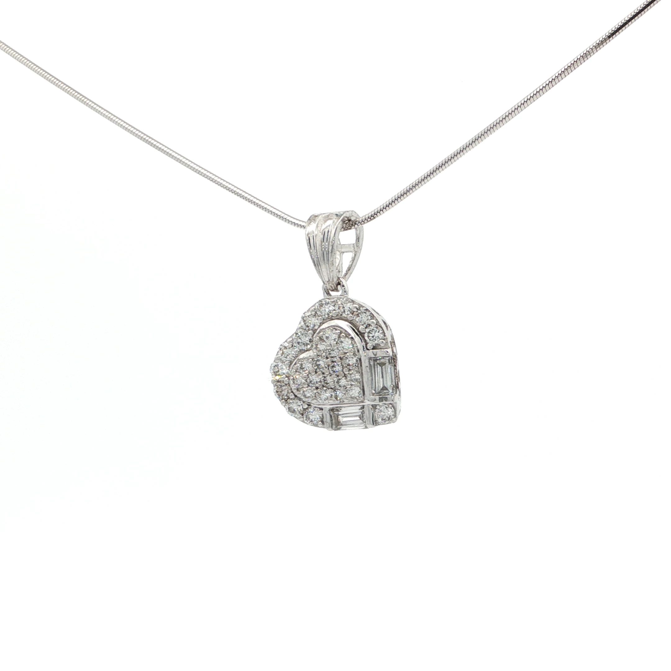 Indulge in timeless elegance with this captivating heart shaped diamond pendant. Meticulously crafted in 18k white gold, it showcases a cluster of brilliant round and emerald cut diamonds. The pendant epitomizes sophistication and charm. Perfect for adding a touch of sparkle to any ensemble.