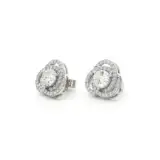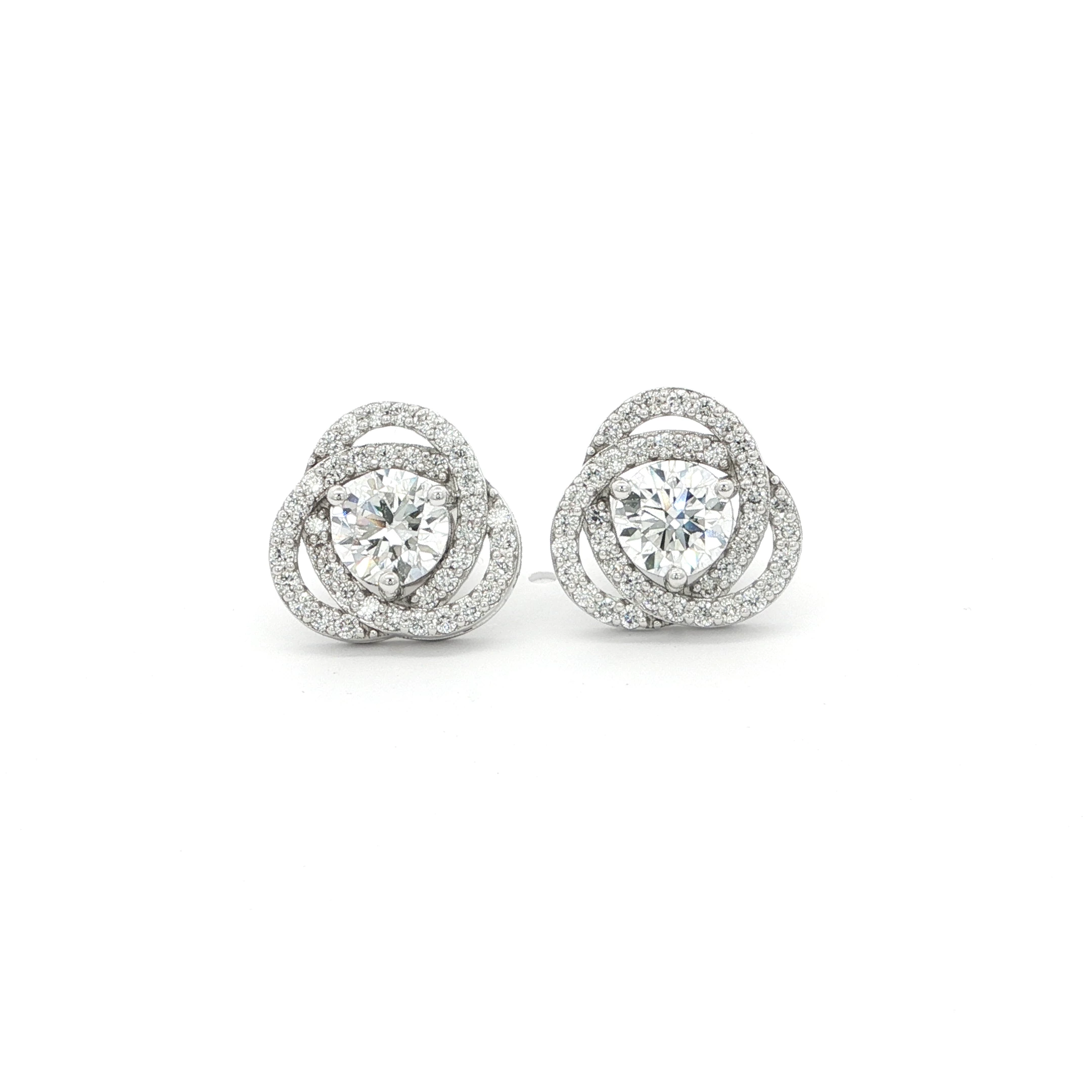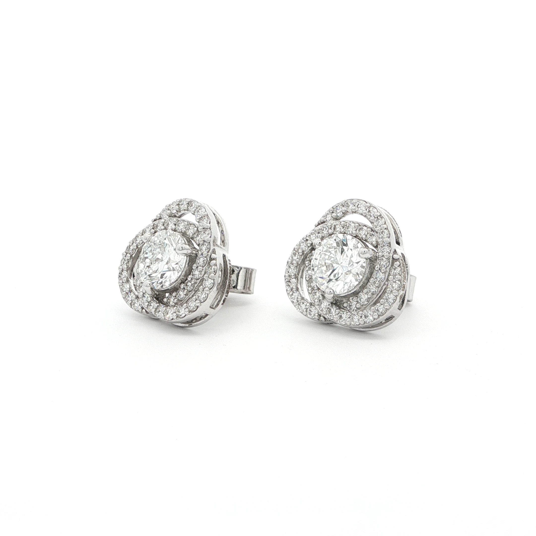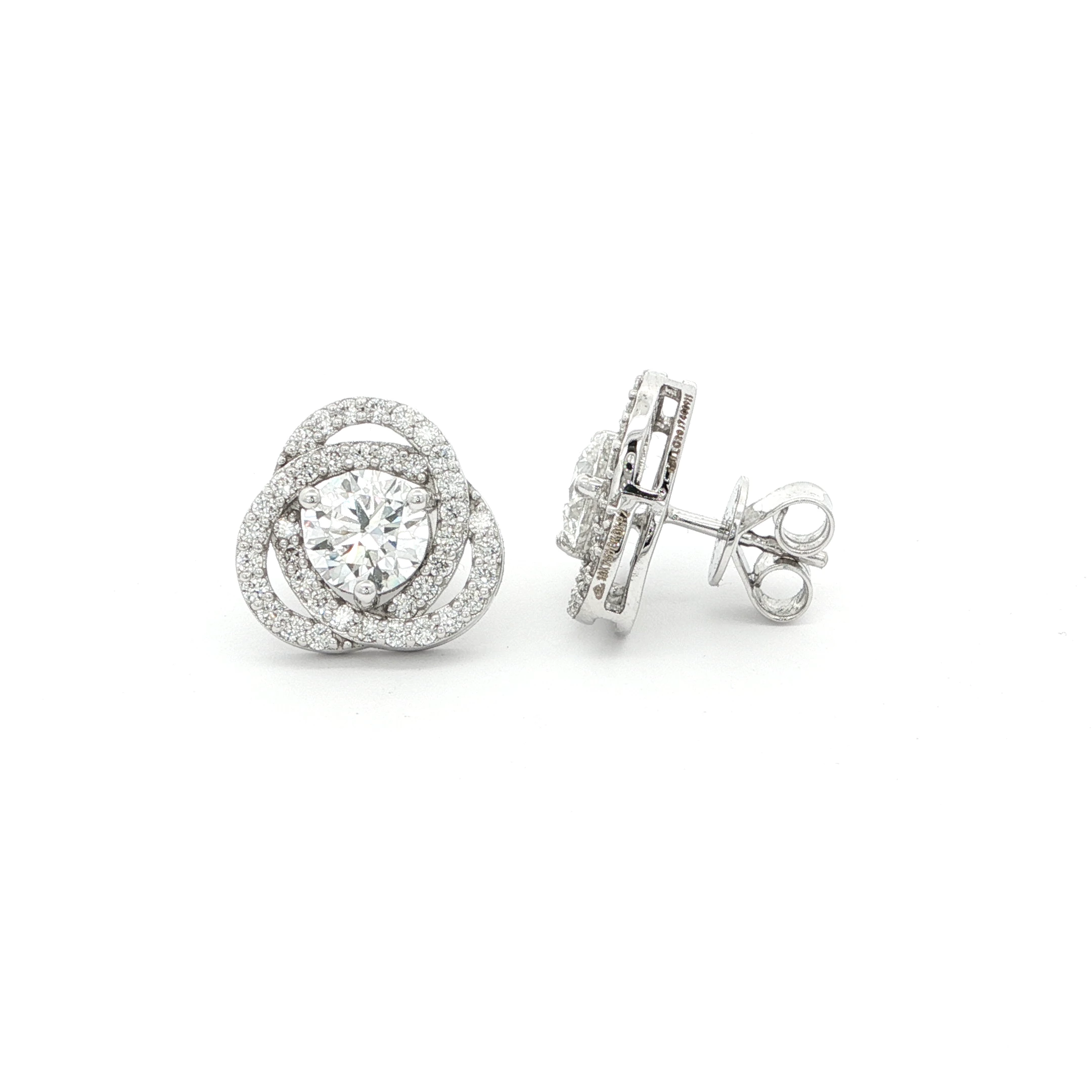 Elevate your style with these exquisite 2.06 carat stud earrings, crafted with 18k white gold. Each earring showcases a central round brilliant cut diamond, radiating exceptional sparkle and brilliance. These captivating studs offer a timeless design, perfect for adding a touch of elegance to any ensemble.