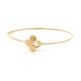 Elevate your style with this exquisite 18k yellow gold bangle. This piece features a meticulously crafted clover accent, adding a touch of elegance and charm. Perfect for everyday wear or special occasions, this bangle is a testament to timeless design and sophisticated style.