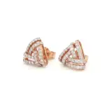 Elevate your style with these exquisite rose gold stud earrings. The triangular silhouette, crafted from lustrous 18k rose gold, adds a modern touch. Each earring showcases a dazzling array of round cut diamonds with brilliant cutting style. These earrings are a perfect fusion of elegance and contemporary design, making them ideal for any occasion.