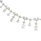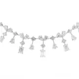 Adorn your neckline with this exquisite 18k white gold diamond necklace. A symphony of round, pear and emerald brilliant cut diamonds creates a captivating cascade of light. The diamonds are masterfully set in a delicate, fluid design that drapes gracefully, enhancing any ensemble with timeless elegance and sophisticated charm.